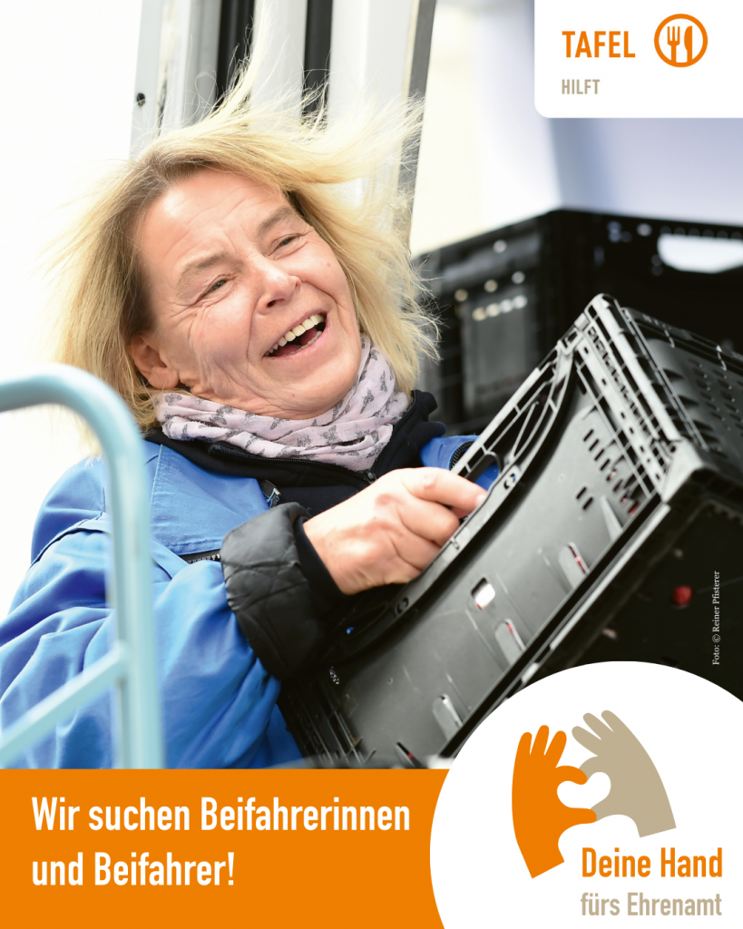 Holen Sie als Beifahrerin oder Beifahrer Lebensmittelspenden ab. Wir freuen uns, wenn Sie uns ehrenamtlich, je nach ihren Möglichkeiten, vormittags oder nachmittags für 3-4 Stunden unterstützen. Mehr…