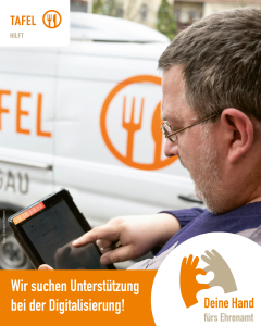 Die Tafel Biedenkopf sucht TATKRÄFTIGE UNTERSTÜTZUNG in verschiedenen Bereichen, wie beim Abholen, Sortieren und Verteilen von Lebensmitteln oder bei Sonderaktionen. Freiwillige müssen nicht sofort Mitglied werden, aber bei dauerhafter Mitarbeit ist eine Mitgliedschaft erforderlich, um versichert zu sein.